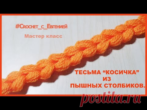 Тесьма "Косичка" из пышных столбиков. Мастер класс. Вязание крючком | Вязание крючком для начинающих
