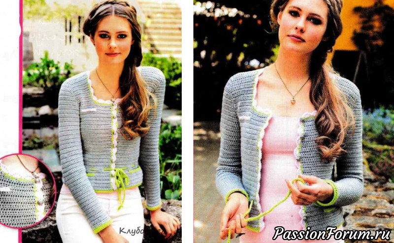 Укороченный жакет крючком | Женская одежда крючком. Схемы и описание Укороченный жакет - планки и бордюры пастельных оттенков делают классический жакет в национальном стиле особенно женственным и романтичным. Вязаный жакет будет одинаково хорош с джинсами и с сарафаном, а пряжа из отборной чистой шерсти не даст вам замерзнуть!Размеры: 36/38 (40/42) 44/46...