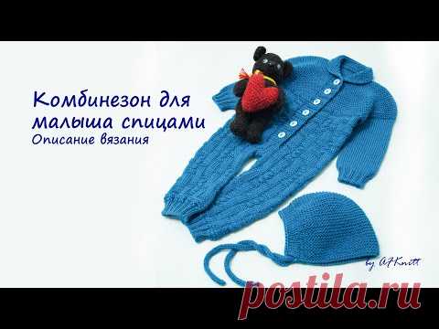 Комбинезон для новорожденного спицами, реглан сверху. Описание вязания