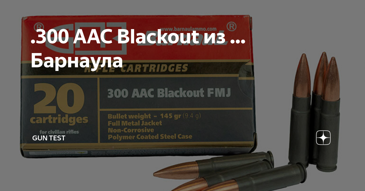 .300 AAC Blackout из … Барнаула В номенклатуре Барнаульского патронного завода (БПЗ) появился новый патрон - .300 AAC Blackout. Он является совершенно уникальным для российского рынка и не применяется, насколько мне известно, ни в одном серийном образце современного российского гражданского оружия. Другие названия этого патрона - .300BLK и 7,62х35 мм. Известны характеристики этого патрона: вес пули FMJ – 145 гран или 9,3 г.