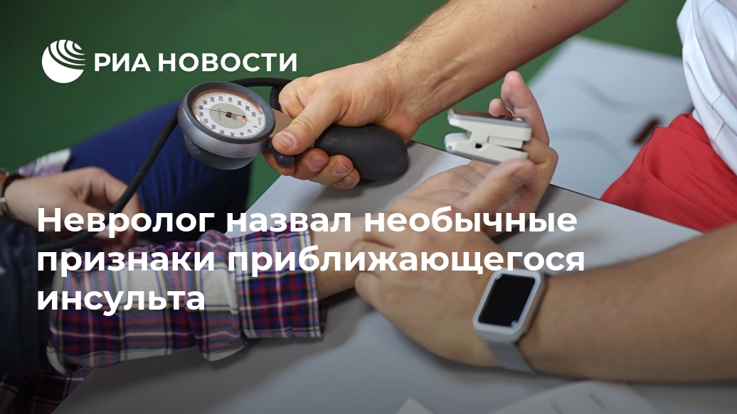 Невролог назвал необычные признаки приближающегося инсульта Доцент кафедры неврологии, нейрохирургии и медицинской генетики Казанского медицинского университета Рустем Гайфутдинов перечислил в беседе с порталом "Ura.ru"... РИА Новости, 28.09.2020
