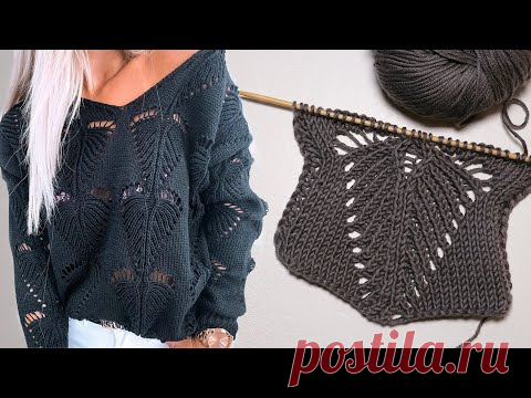 Узор «Листик» спицами усовершенствован вариант | «Leaf» knitting pattern