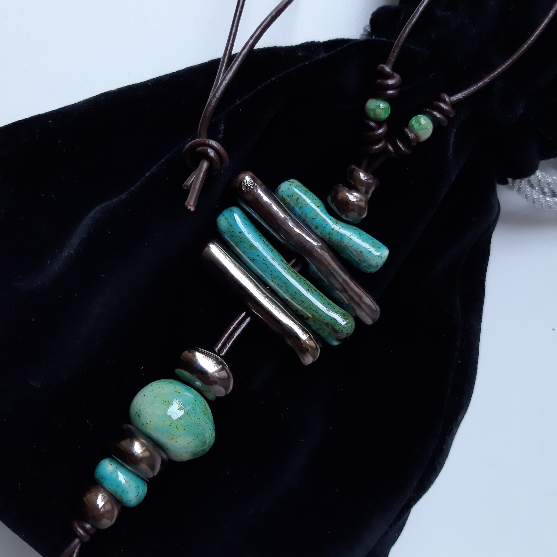 Нарядная подвеска из моей авторской коллекции "Бирюза". Оригинальный дизайн, цвет и блеск! Роспись очень красивыми глазурями с интересными цветовыми эффектами. Высоко-температурный обжиг. Бирюзовый цвет+коричневый с золотым мерцанием. Краски вечные. Цвет не тускнеет и не меняется.