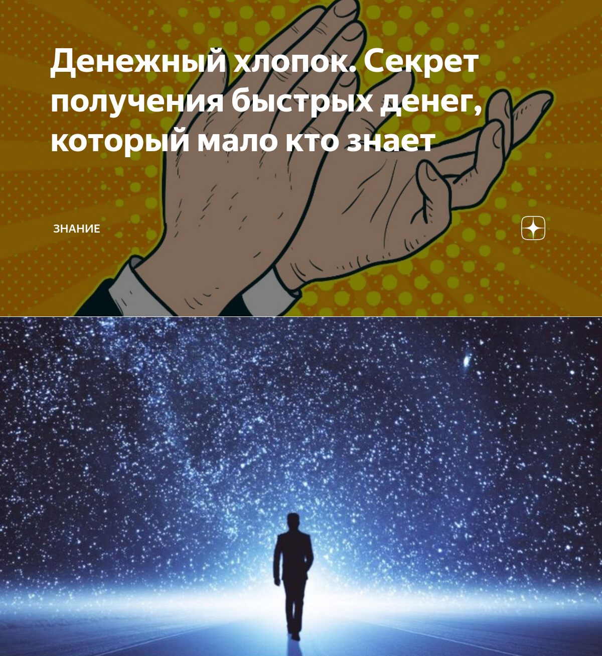 Денежный хлопок. Секрет получения быстрых денег, который мало кто знает | знание | Яндекс Дзен