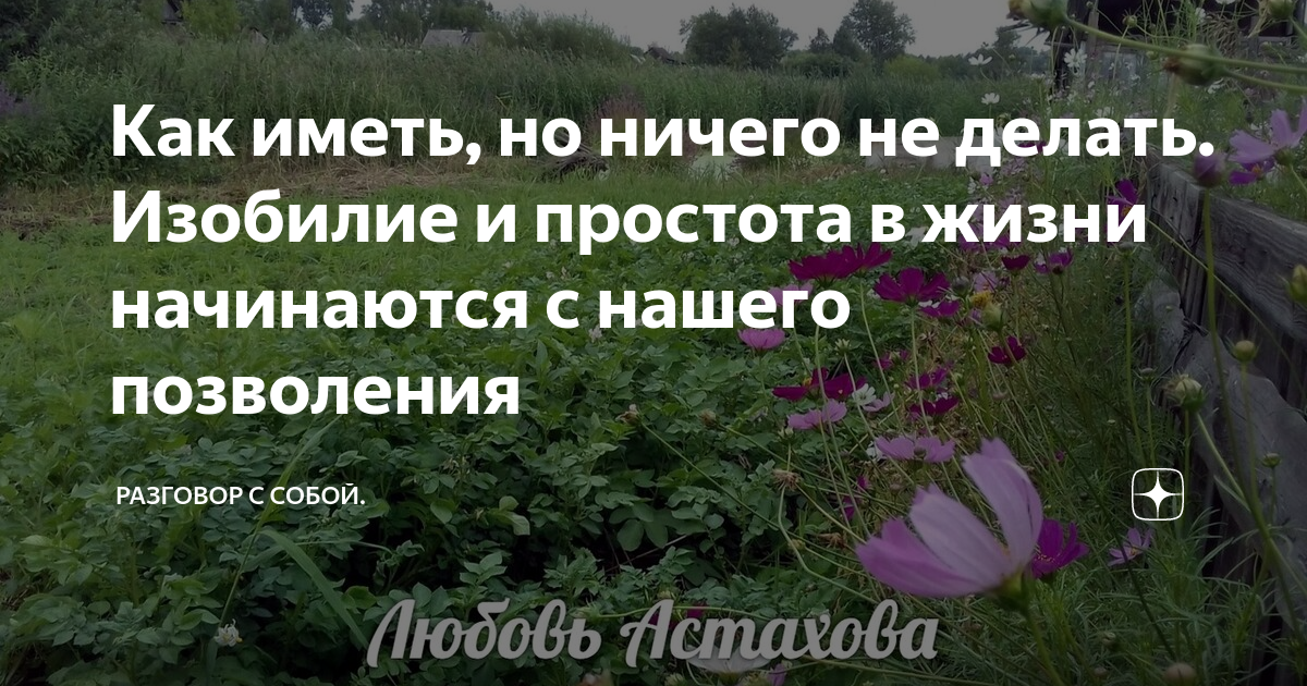 Как иметь, но ничего не делать. Изобилие и простота в жизни начинаются с нашего позволения Пока мы не позволим жизни просто происходить, а будем пытаться что-то устроить, создать и сотворить, в ней будут сохраняться сложности и бытовуха, призванные научить нас смирению. На фото заросли Космеи, которые растут сами. Они осыпаются осенью, всходят весной и радуют меня всё лето до поздней осени. Наша жизнь настолько проста и удивительна, но мы не верим что так может быть. Начинаем