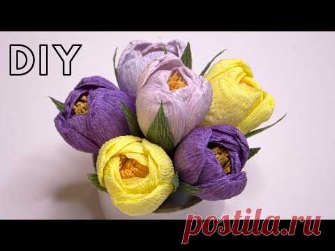 Крокусы из гофрированной бумаги / Цветы к 8 марта / DIY Crocuses made of corrugated paper - YouTube