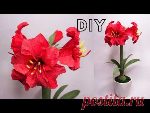 Амариллис из гофрированной бумаги к 8 марта / Гиппеаструм / DIY Amaralis from corrugated paper - YouTube Пошаговый мастер-класс изготовления амараллиса в горшке из гофрированной бумаги. Эти цветы украсят интерьер вашего дома. Такие интерьерные цветы будут прекрасным подарком мамам, бабушкам, учительницам к 8-му марта. #гофрированнаябумага #8марта #diy