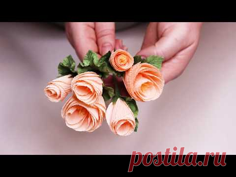 Простые розы за 5 минут из бумаги / DIY Simple roses for a bouquet of paper - YouTube Решила показать вам самый простой способ сделать розочки для композиции из гофробумаги, такие розы может сделать каждый.