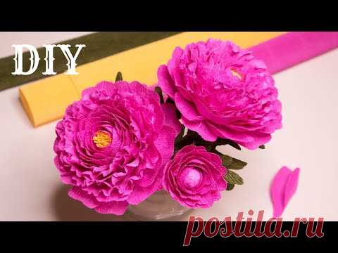 Пионы из гофрированной бумаги / DIY Peonies of corrugated paper - YouTube Сегодня покажу как сделать пионы из гофрированной бумаги, смотрите подробный мастер-класс.