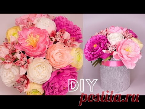 Букет в коробке / МК ШЛЯПНАЯ КОРОБКА СВОИМИ РУКАМИ / Bouquet of Peonies - YouTube