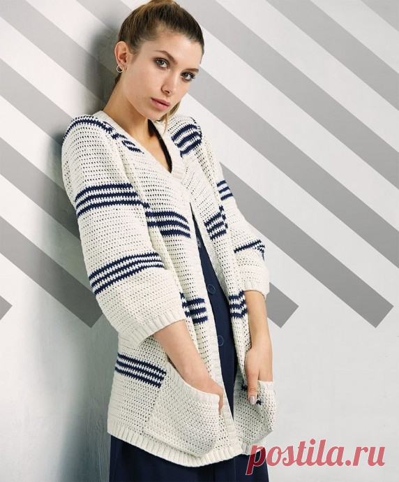 КАРДИГАН С КАРМАНАМИ В МОРСКОМ СТИЛЕ