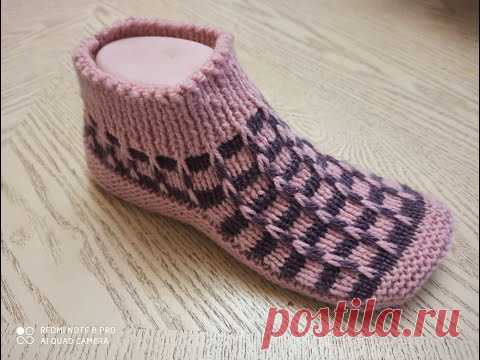 Легкие и удобные тапочки-следки на двух спицах № 34.