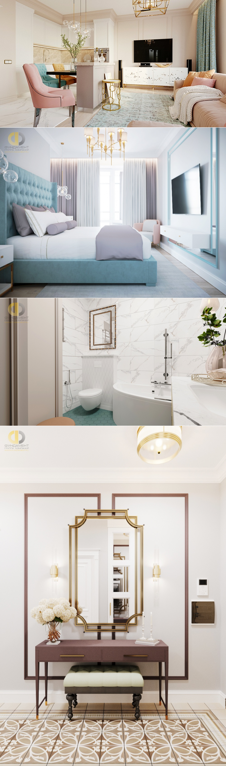 Дизайн интерьера двухкомнатной квартиры 66 кв.м в стиле современная классика