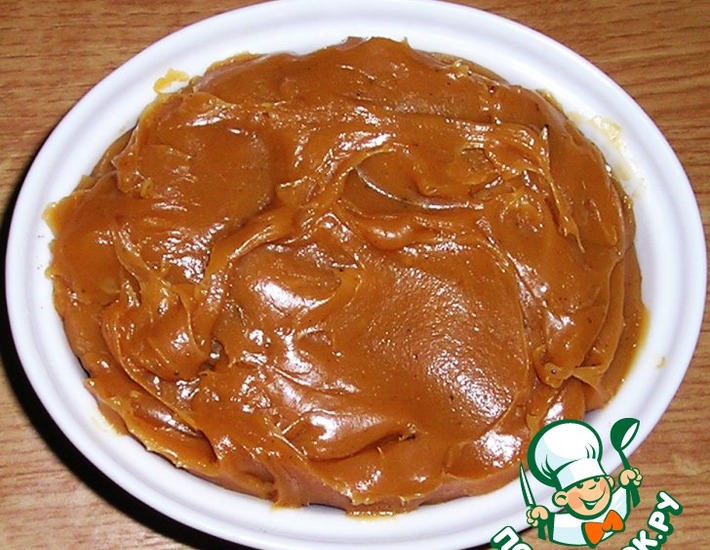 - Смешиваем все ингредиенты КРОМЕ СЛИВОЧНОГО МАСЛА в толстостенной кастрюле и варим на слабом огне, ПОСТОЯННО ПОМЕШИВАЯ, пока масса не начнёт приобретать коричневый оттенок. После этого добавляем сливочное масло и варим до готовности. На приготовление карамели уйдёт примерно 1,5 часа. Если варить меньше, то получится замечательная сгущёнка. Если немного переварить, то получатся твёрдые ириски. Здесь главное не пережечь. И ещё раз повторюсь - ВАРИТЬ НУЖНО ПРИ ПОСТОЯННОМ ПОМЕШИВАНИИ!!!