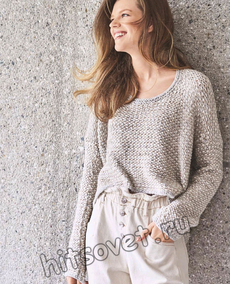 Модный вязаный спицами узором со снятыми петлями джемпер-оверсайз. / Хитсовет