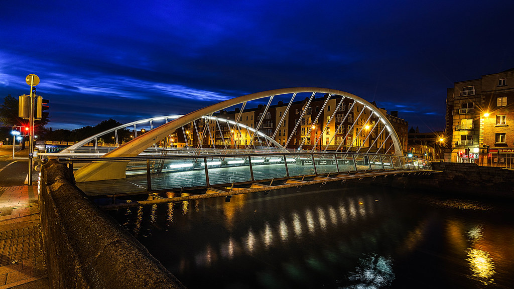 James Joyce Bridge is a road bridge spanning the River Liffey in Dublin, Ireland, joining the south quays to Blackhall Place on the north side. Designed by Spanish architect Santiago Calatrava, it is a single-span structural steel design, 40 m (131 ft) long, with the deck supported from two outward angled arches.[2]