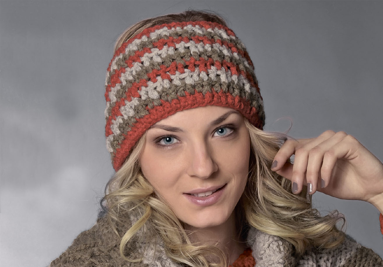 Полосатая налобная повязка - схема вязания крючком с описанием на Verena.ru