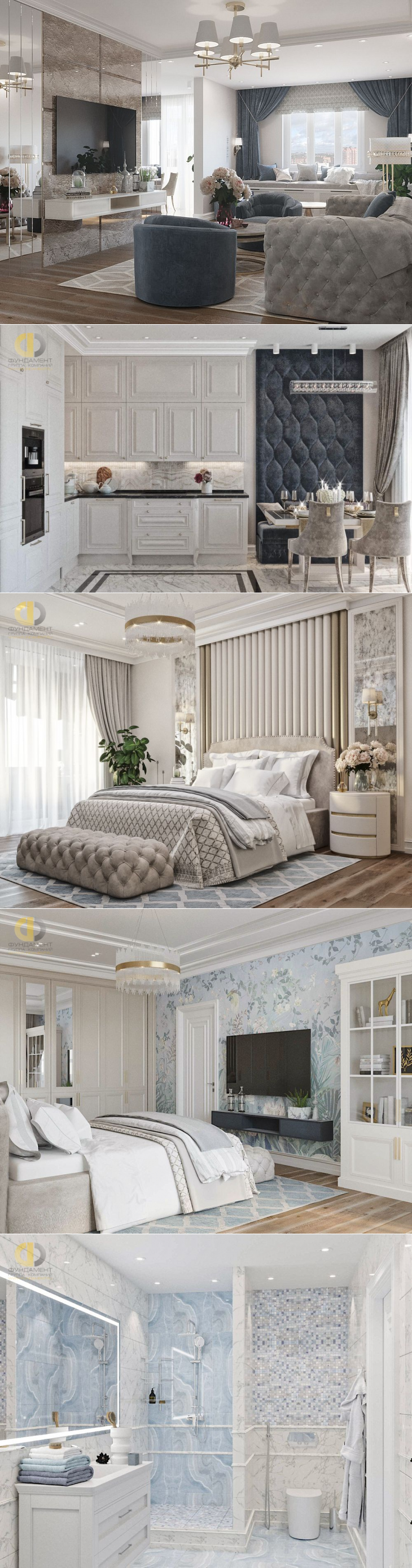 Дизайн интерьера двухкомнатной квартиры 100 кв.м в стиле ар-деко