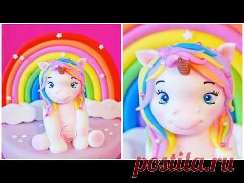 UNICORN RAINBOW CAKE TOPPER TUTORIAL / TORTA UNICORNO / ARCOBALENO FONDANT PORCELANA FRIA