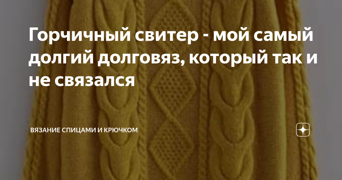 Горчичный свитер - мой самый долгий долговяз, который так и не связался Есть вещи которые не вяжутся. Ну вот не вяжутся и все тут. Этот свитер как раз из таких. Еще прошлым летом задумала связать себе горчичный свитер. Сразу нашлась пряжа и узор вроде бы не сложный. Но вот не складывалось и все тут. Основная проблема была в том, что моя пряжа раза в 2 а то и 3 толще, чем та из которой связан свитерок на фото. Но я именно так и хотела - чтобы быстренько на 5-х спицах з