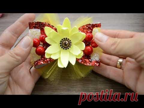Осенний бант из фатина и экокожи/Bow/Tutorial