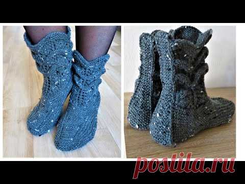 БЕСШОВНЫЕ САПОЖКИ СПИЦАМИ.УЮТНЫЕ ДОМАШНИЕ НОСКИ-САПОЖКИ НА ДВУХ СПИЦАХ ОДНИМ ПОЛОТНОМ.