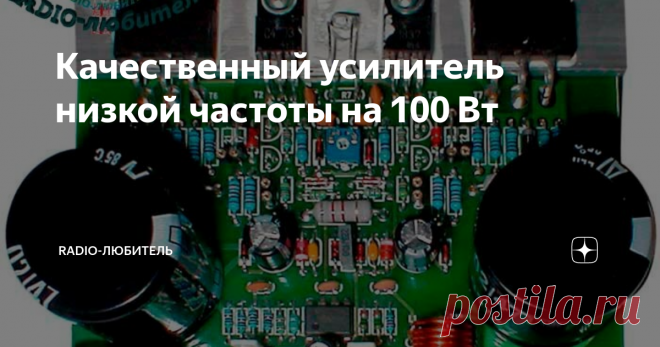 Качественный усилитель низкой частоты на 100 Вт Вид платы в сборе Всем здравствуйте. Бывают моменты при публикации какой-либо схемы усилителя низкой частоты, возникает ну скажем полемика по поводу схемотехники усилителей. Либо профи приходят и пытаются искать схемотехнические ошибки, а чаще всего ну даже не знаю каковыми они себя считают. Принципиальная схема выходного каскада с мощностью 100 Вт представлена на рисунке. Схема усилителя 100