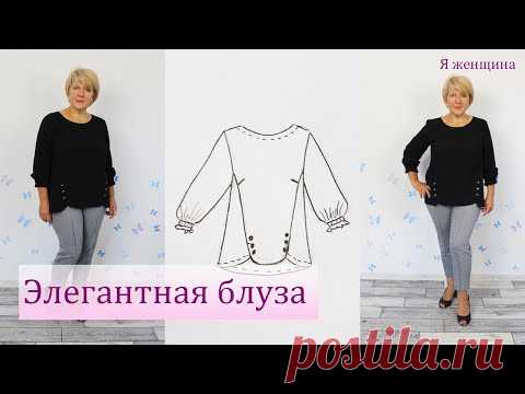 Элегантная блуза свободного кроя. Без боковых швов и рельефами переходящими в застежку