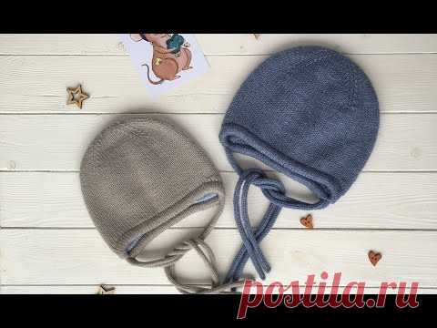 Детская шапка с анатомическими ушками спицами. Подробный мастер-класс.