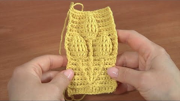 Вязание крючком узора с нежными 3Д листиками Урок 20