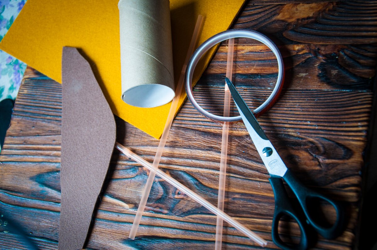 Бумажного стаканчика не нашла, заменила его втулкой от туалетной бумаги. Подвижная игрушка для ребенка за пару минут