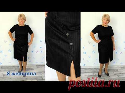 Деловое платье футляр с ассиметричной планкой и имитацией застежки по юбке