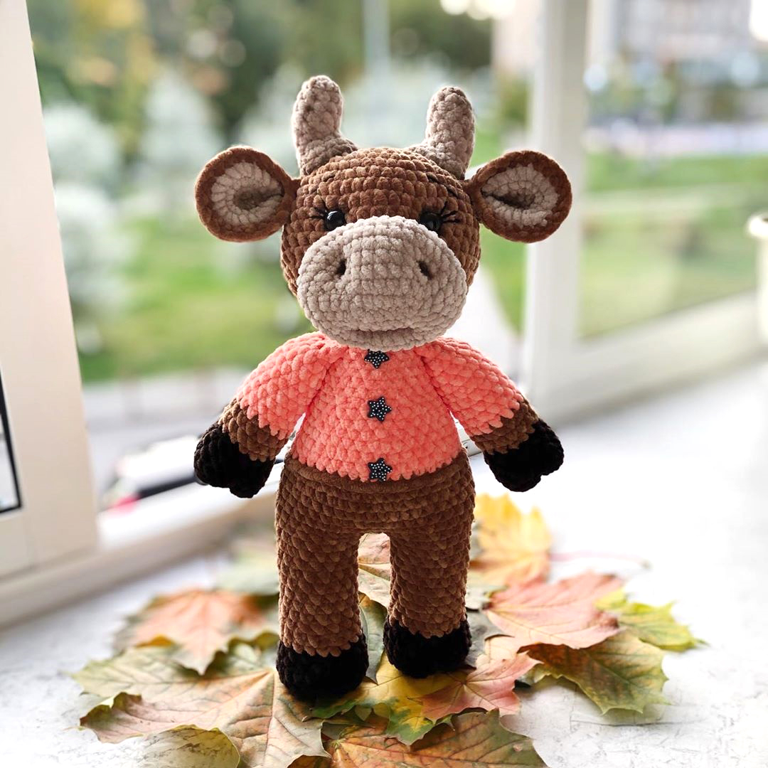 PDF Бычок Умка крючком. FREE crochet pattern; Аmigurumi animal patterns. Амигуруми схемы и описания на русском. Вязаные игрушки и поделки своими руками #amimore - корова, коровка, телёнок, плюшевый бык, большой бычок из плюшевой пряжи.
