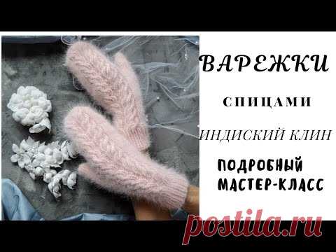 МК ВАРЕЖКИ спицами из пуха норки// Вяжем палец ИНДИЙСКИМ КЛИНОМ// Подробный МАСТЕР-КЛАСС.