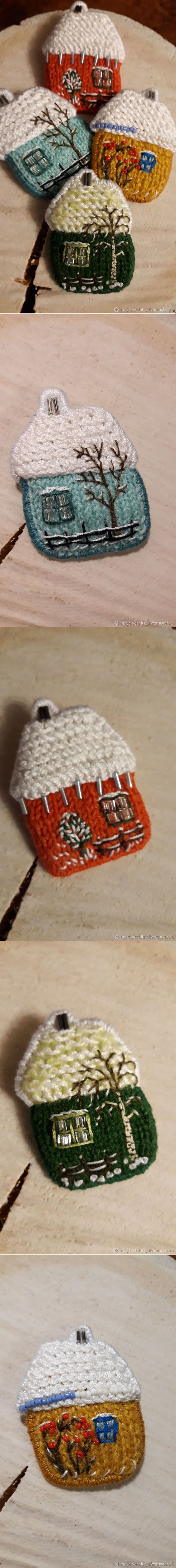 Броши вязаные с вышивкой 'Зимние домики' ручная работа – заказать на Ярмарке Мастеров – DN55RRU | Брошь-булавка, Ноябрьск