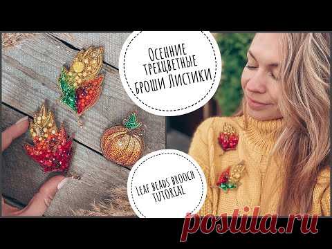 Броши трехцветные листики | как сделать осеннюю брошь из бисера своими руками | leaf beadsbrooch DIY