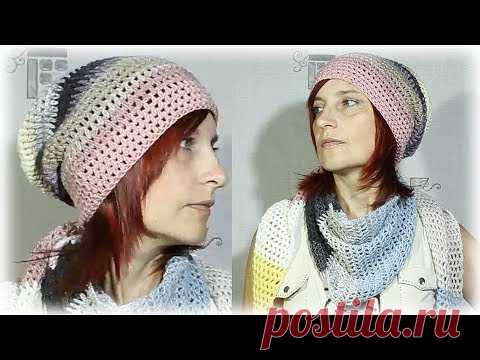 Как связать шапку бини / Обалденная шапка из остатков пряжи.