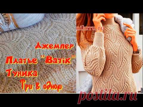 Шикарный удлиненный джемпер и одновременно платье с цельновязаным рукавом "Batik"/Бесплатный МК