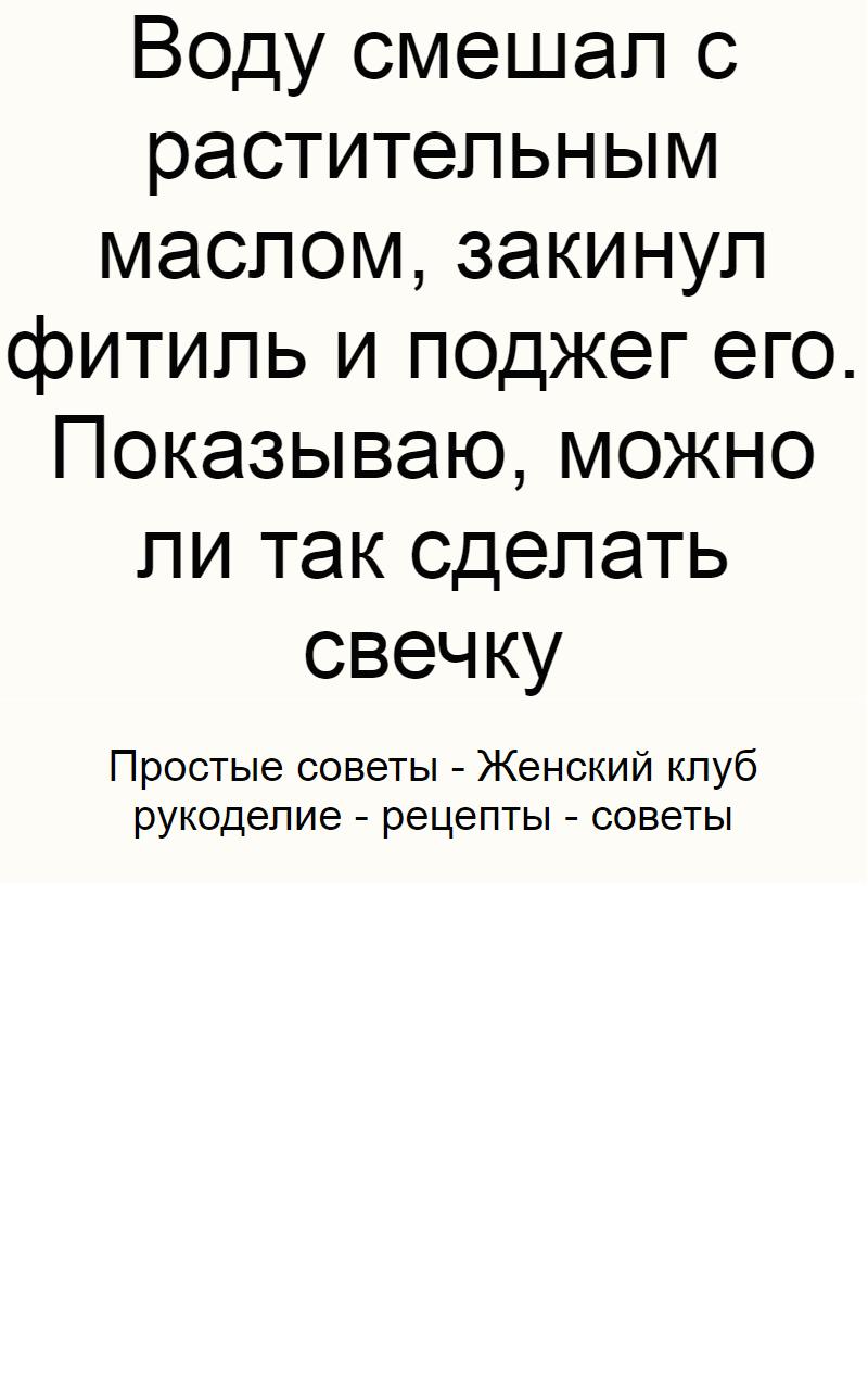 Воду смешал с растительным маслом, закинул фитиль и поджег его. Показываю, можно ли так сделать свечку