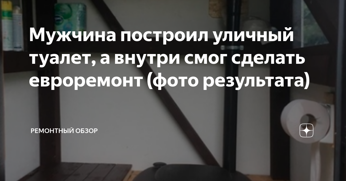 Мужчина построил уличный туалет, а внутри смог сделать евроремонт (фото результата) Многие люди, которые делают ремонт и улучшают что-то у себя дома или на даче, делятся идеями в интернете. Это очень удобно, ведь часто креатив других позволяет облагородить собственную территорию. Одна из таких идей мне очень понравилась, и я хотел бы поделиться ею.
