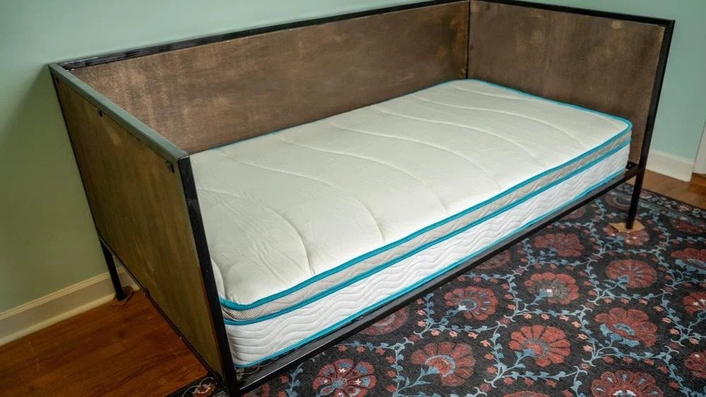 Кровать с металлическим каркасом Эта кровать изготавливалась не как "повседневная", а как "гостевая". В обычное время она выполняет роль дивана, а в случае необходимости на ней можно разместить на ночевку гостя. Инструменты и материалы:-Сварочное оборудование;-Угловая шлифовальная машина;-Ленточная