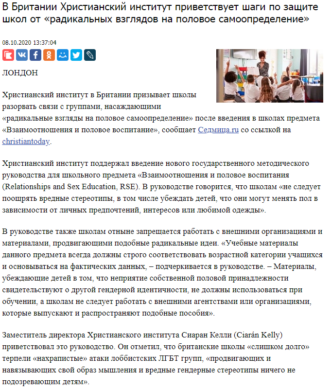 В Британии Христианский институт приветствует шаги по защите школ от «радикальных взглядов на половое самоопределение» | Радонеж.Ру
