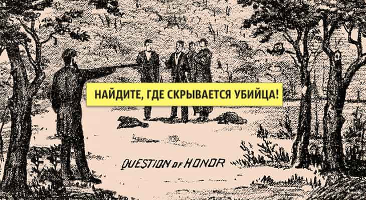 Сможете ли вы найти скрытого убийцу на этом изображении? Сможете ли вы найти скрытого убийцу на этом изображении?Все эти щеголеватые джентльмены, изображенные на картине, в опасности! Где-то в лесу