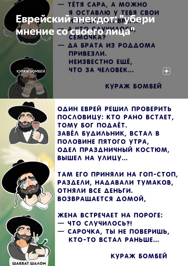 Еврейский анекдот: "убери мнение со своего лица" | Кураж Бомбей | Яндекс Дзен
