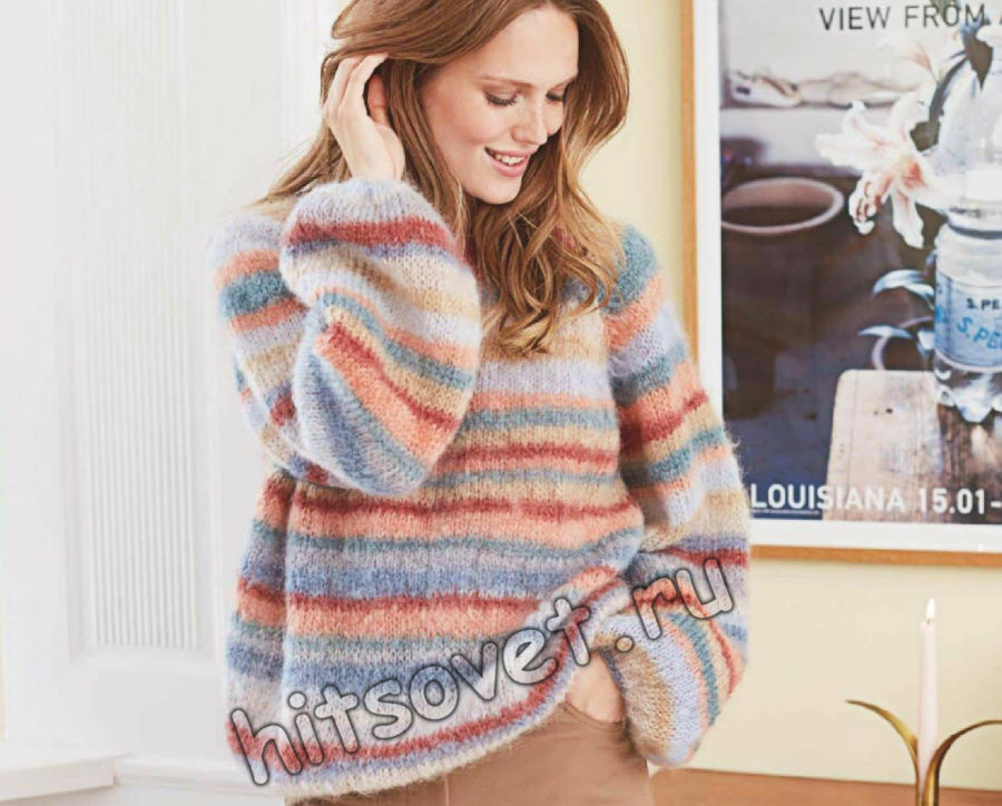 Мохеровый цветной полосатый пуловер - Хитсовет