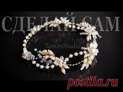 Свадебный венок невесты из бусин