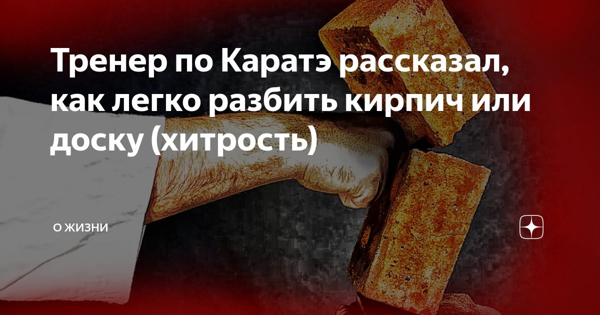 Тренер по Каратэ рассказал, как легко разбить кирпич или доску (хитрость) Всех приветствую, мужики! Я недавно ходил на день города. У нас были выступления, песни и самое главное специальный номер от школы Каратэ. Ну и конечно это эффектное представление закончилось разбиванием кирпичей и досок. Я конечно видел в интернете, как это все делается, но в живую — впервые. И самое главное, что меня больше всего удивило, что разбивали не какие-то там супер накаченные мужики, а