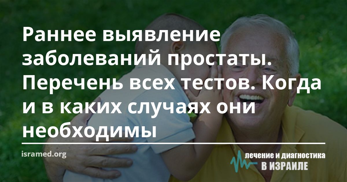 Раннее выявление заболеваний простаты. Перечень всех тестов. Когда и в каких случаях они необходимы Различные мировые здравоохранительные организации, в том числе и Американская специальная комиссия профилактической медицины (USР5Т), рекомендуют мужчинам до 70 лет, находящимся в группе повышенного риска (с семейным анамнезом - отец, брат или сын, болевшие раком простаты ) взвесить вместе с врачом преимущества и недостатки тестов для диагностики рака предстательной железы.