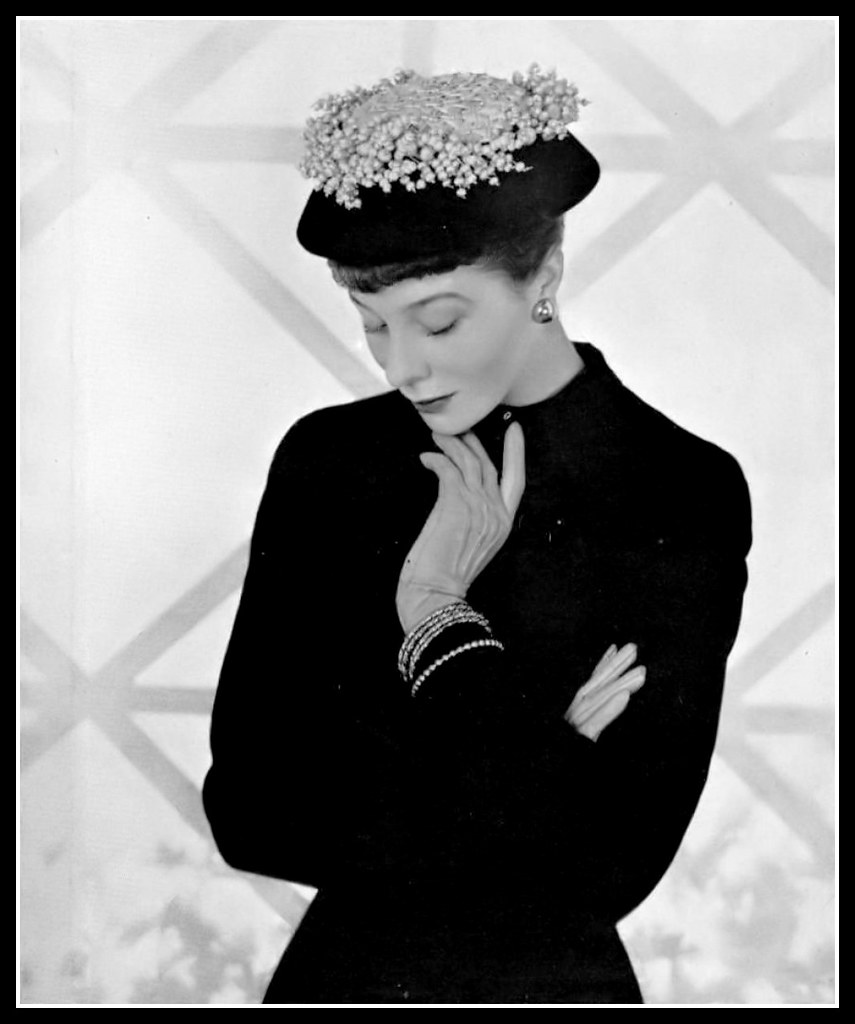 Bettina wearing a hat by Madame Paulette, photo by Pottier, 1948