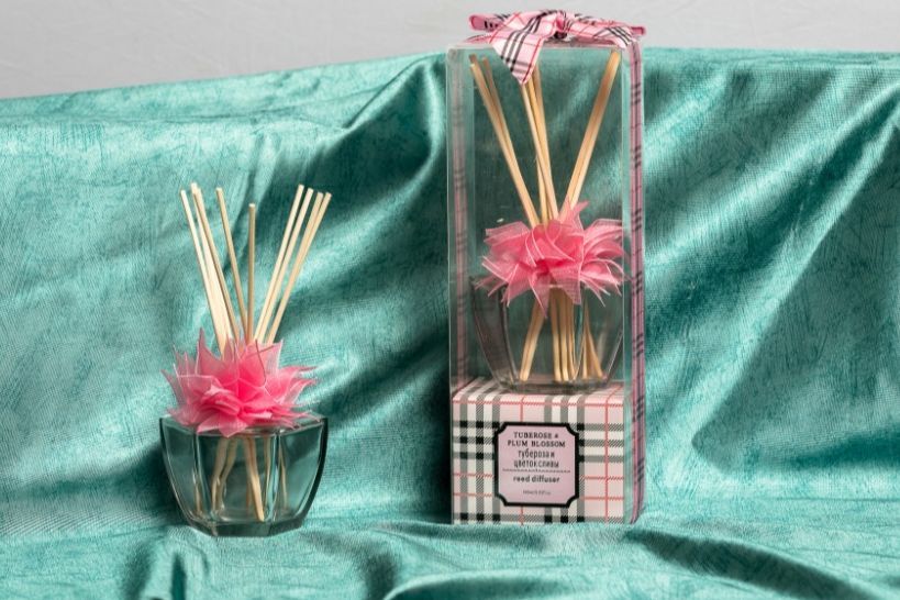 Диффузор, аромат "Тубероза и цветок сливы", Индокитай 100 мл Лучший способ ароматизировать воздух в помещении - это тростниковый аромадиффузор с уникальным парфюмерным составом. В отличие от аромаламп, свечей и электрических распылителей, арома смесь в них не нагревается, а испаряется естественным путем благодаря тросниковым (ротанговым) палочкам.